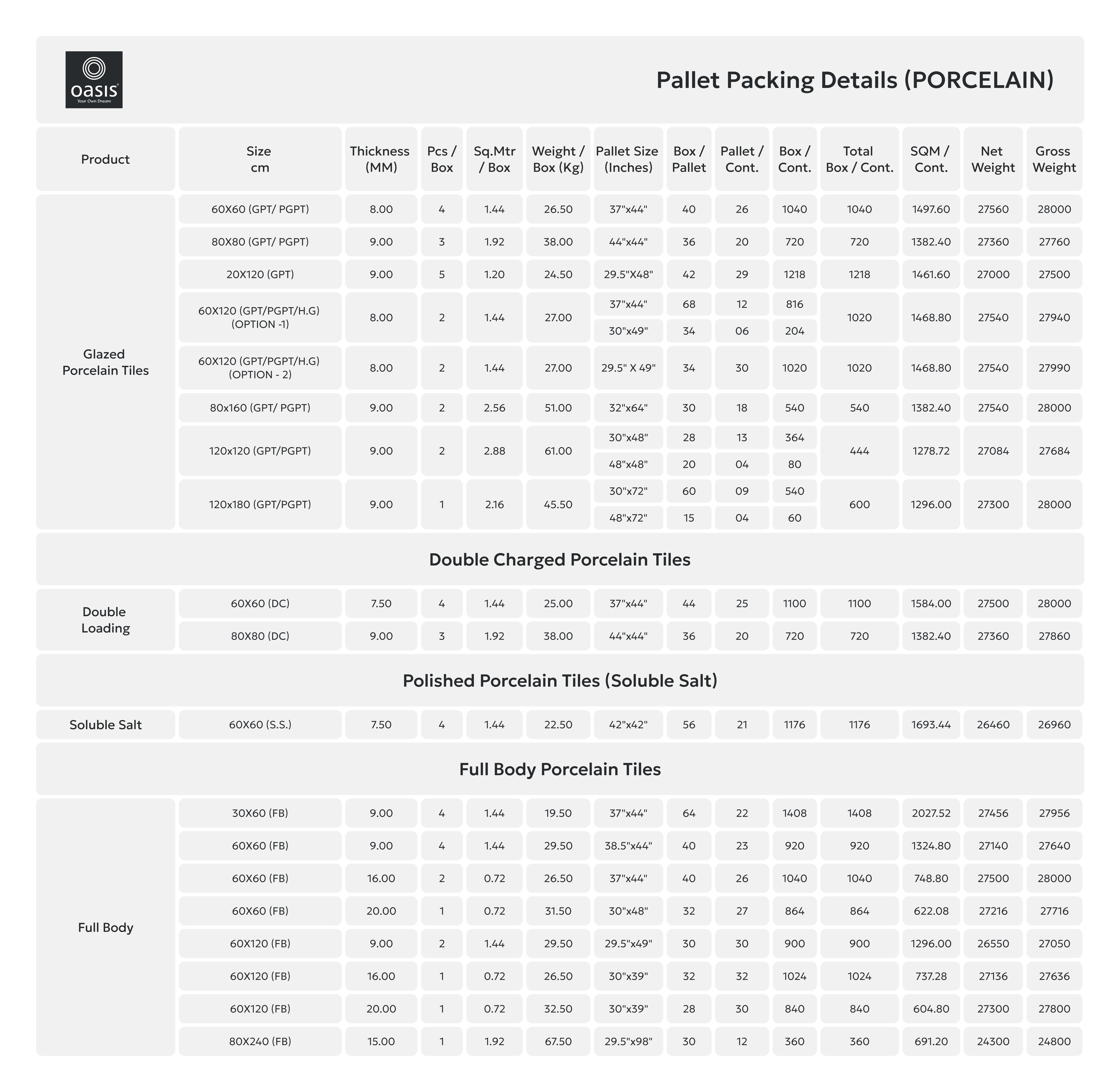 Porcelain - Packing Details