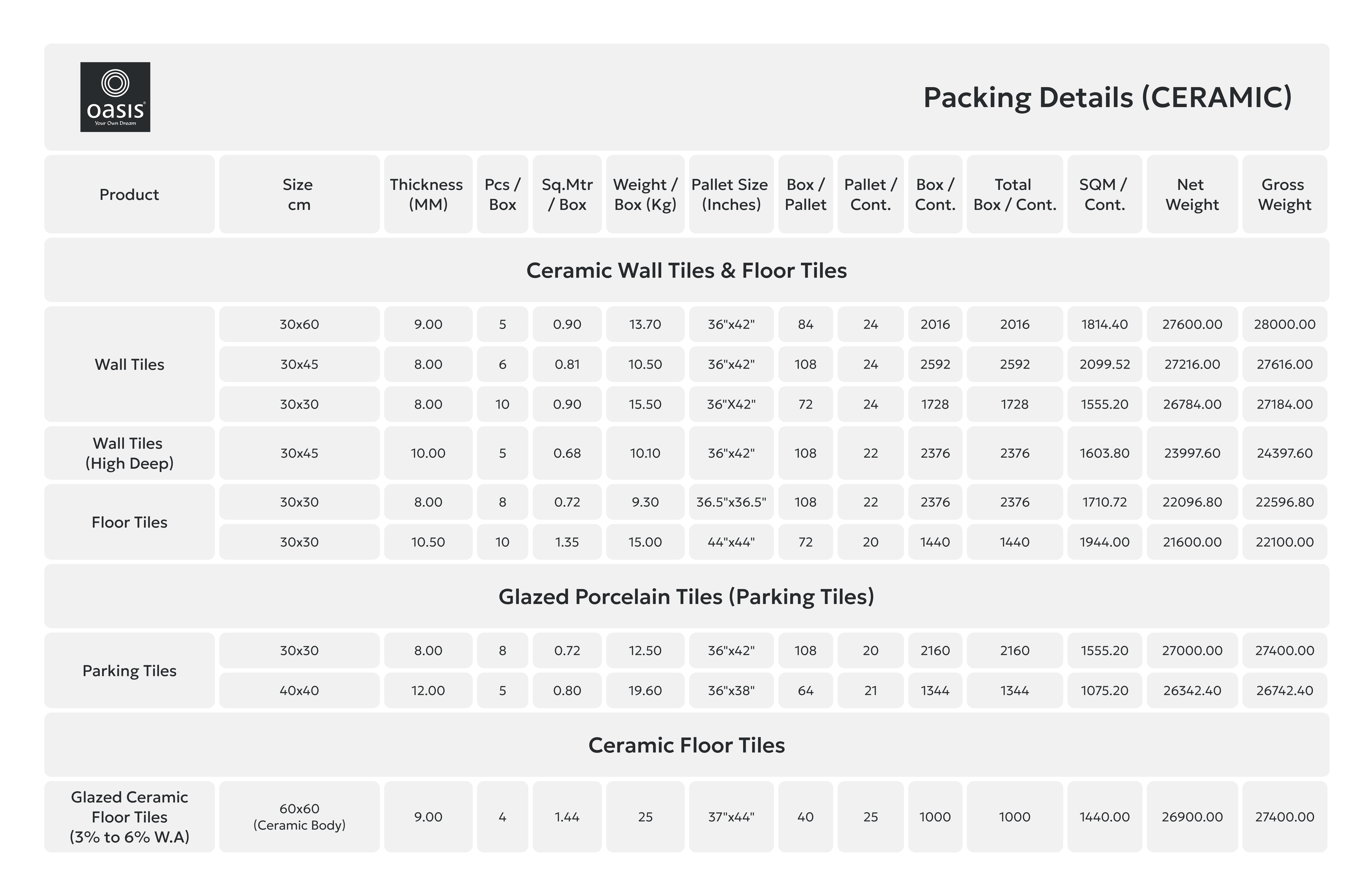 Ceramic - Packing Details